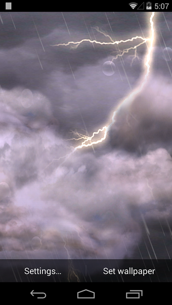 Jeśli chcesz przeżyć prawdziwą burzę, ta aplikacja jest dla Ciebie. Możesz uzyskać piękną tapetę na żywo, która pokazuje pogodę, a także aktualny stan chmur. Ma bardzo szczegółowy i realistyczny widok burzy. Jest to płatna aplikacja, ale możesz uzyskać pełny ekran ustawień, na którym możesz dostosować wszystkie ustawienia.